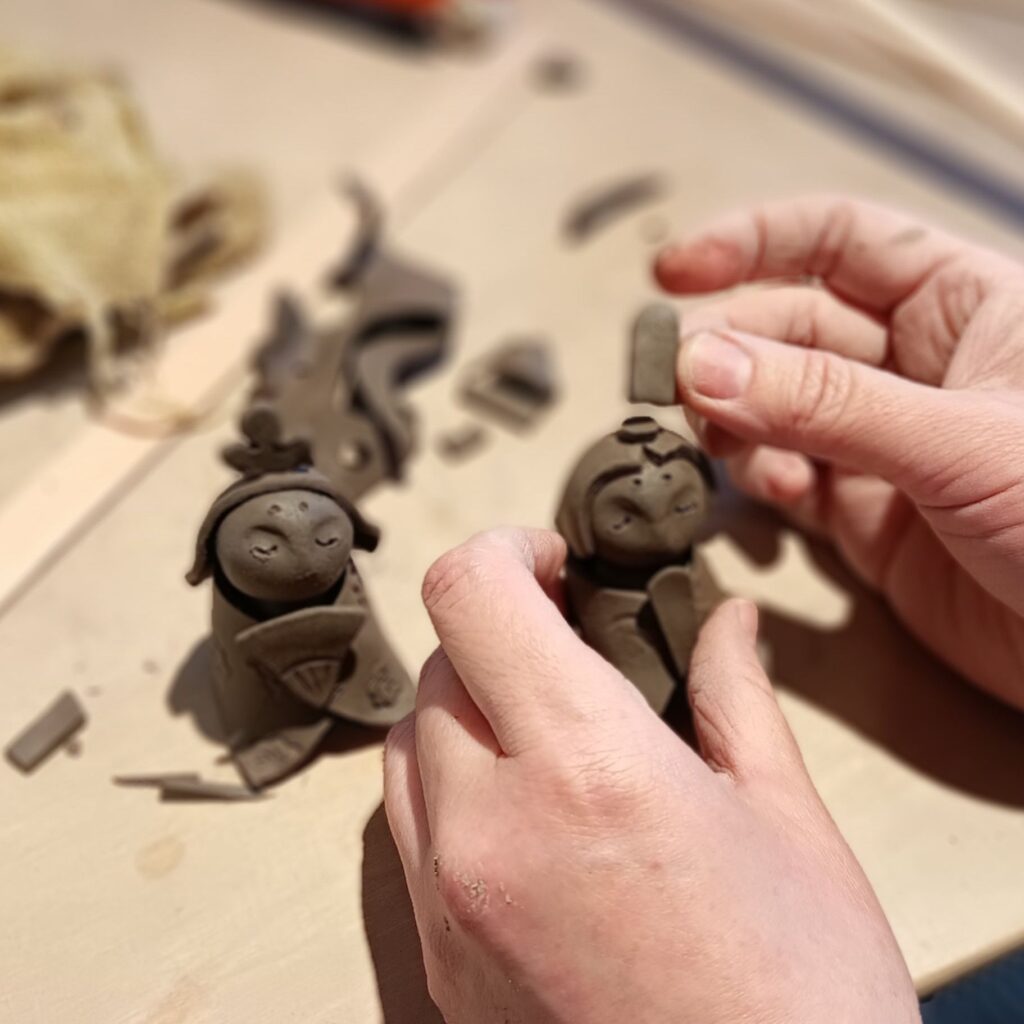 てびねり成形により自由にオリジナリティある小さな雛人形を作って頂けます。